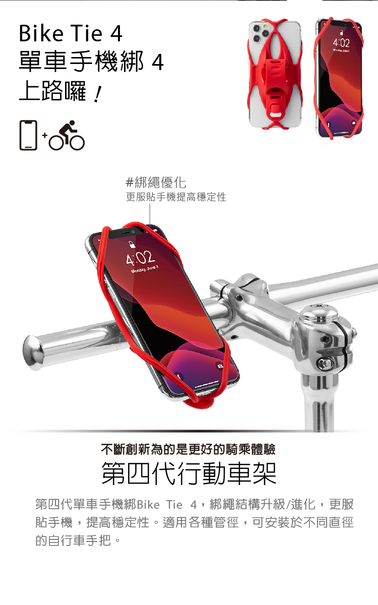 BONE 蹦克 單車支架手機綁第四代+電源綁-紅