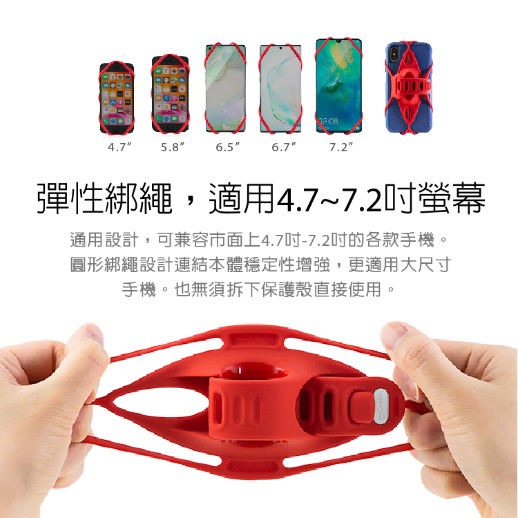 ※彈性綁帶:適用於4.7~7.2吋手機,穩定耐用,不需拆下保護殼即可使用