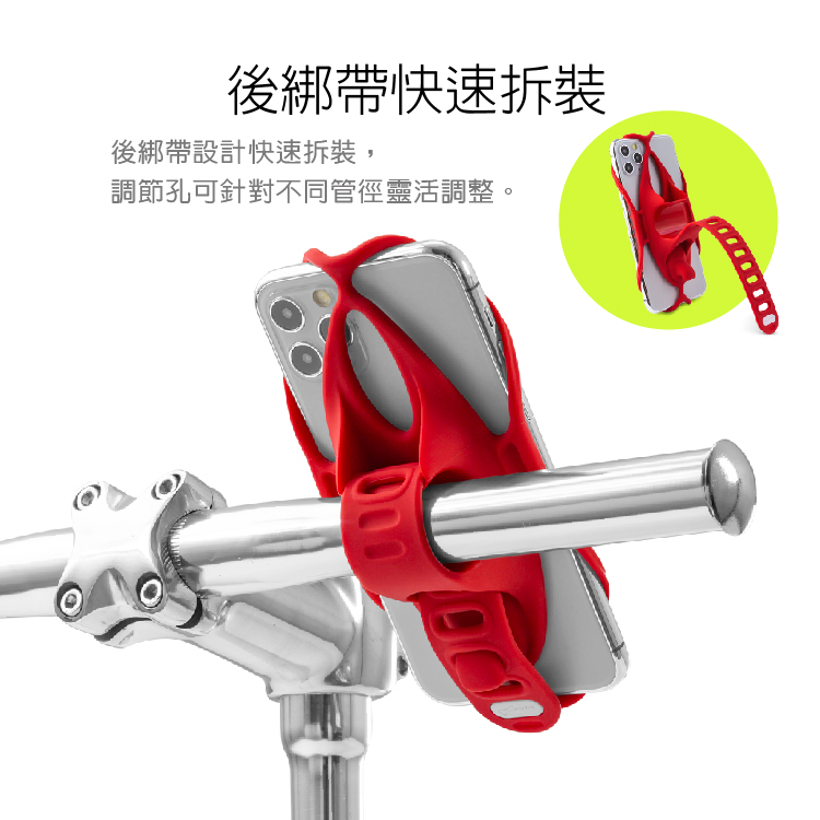 ※全面升級結構:綁帶貼合車架,增強穩定性,適用多種車把樣式