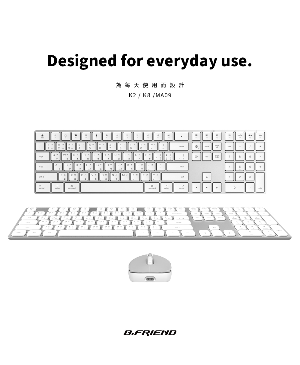 【 即將在嘖嘖預購 】B.FRIEND K2 MAC專用 有線+藍牙 充電式鍵盤