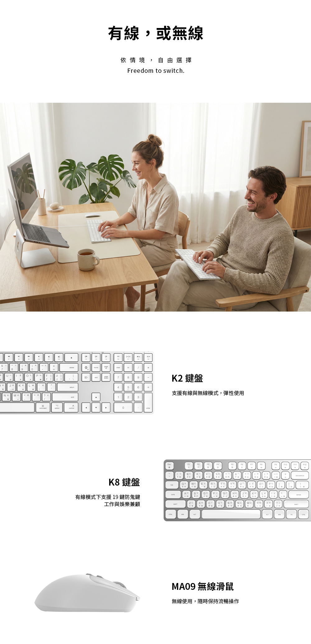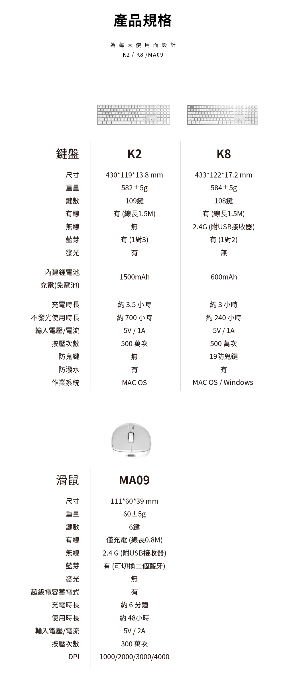 K2 / K8 / MA09 提供 銀白 / 太空灰 / 黑色 經典配色