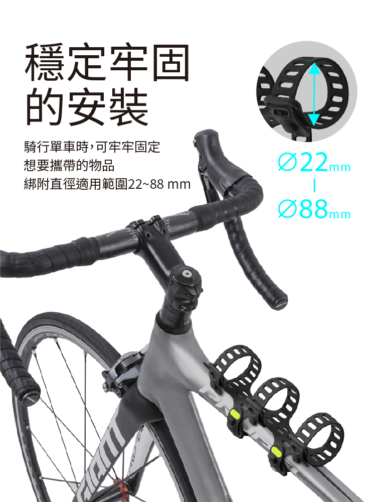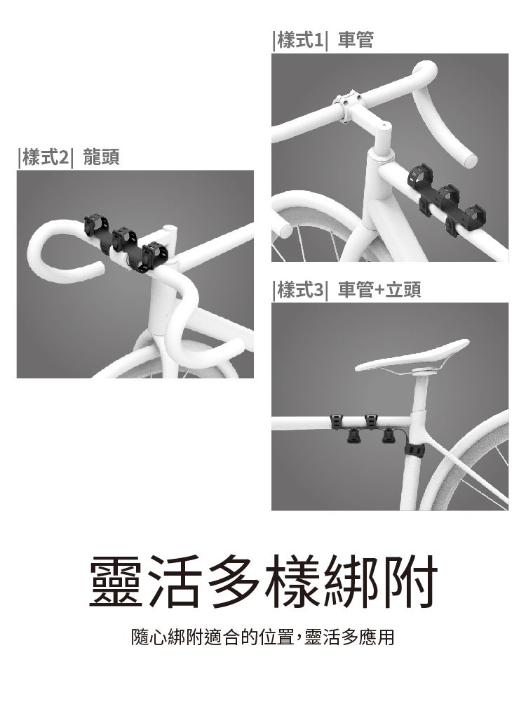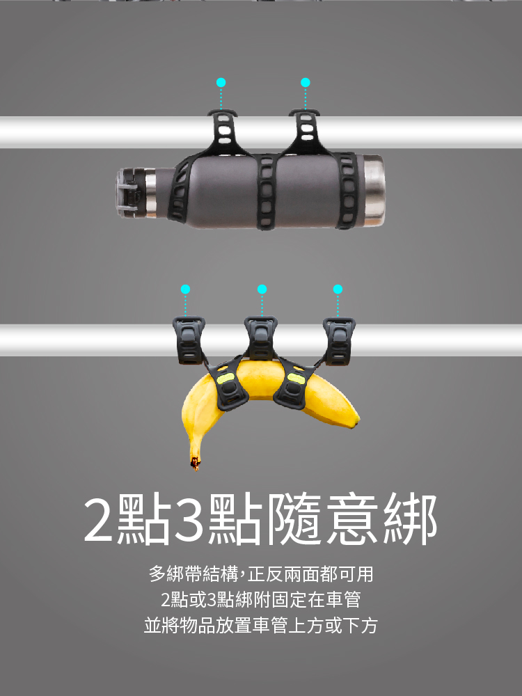 ※多用途設計:可自由綁附於車管或龍頭,攜帶各類物品,提升騎行便利性